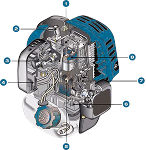 Empleando un sistema de lubricación único, conseguimos los motores de 4 tiempos más pequeños del mercado. También son los más ligeros gracias a sus componentes en magnesio.