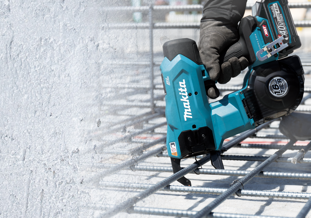 A ferramenta a bateria para amarrar de ferro, Makita TR001G 40Vmax XGT® foi concebida para acelerar os trabalhos com vergalhões, garantindo ao mesmo tempo amarrações consistentemente seguras. A sua potente plataforma de bateria XGT e os motores duplos sem escovas proporcionam uma resistência de amarração excecional e tempos de ciclo rápidos, mesmo com vergalhões de maiores dimensões. O mecanismo avançado de retração do fio garante amarrações firmes e fiáveis em todas as ocasiões, reduzindo a necessidade de retrabalho e aumentando a produtividade no local de obra.